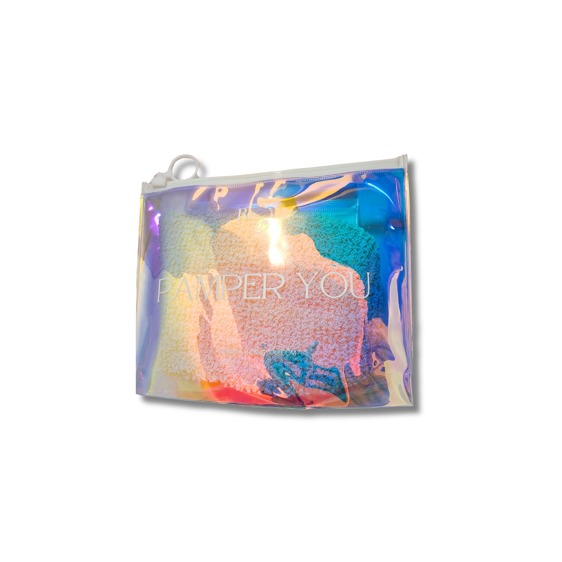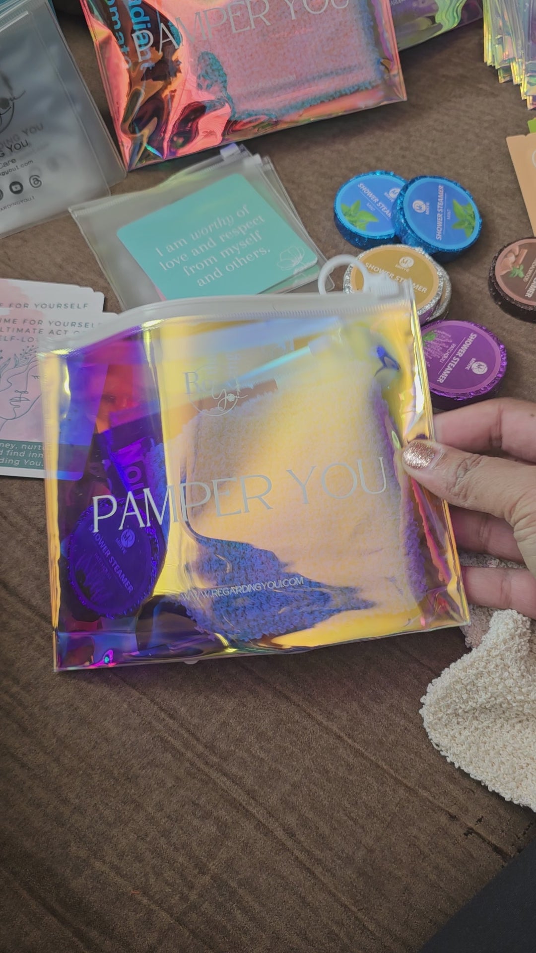 Indulge in self-care wherever you go with our "Pamper You" kit—a curated collection designed for on-the-go relaxation. The exfoliating mitten revitalizes your skin, while the shower bomb turns your shower into a spa-like experience. Immerse yourself in positive vibes with our shower affirmations, and complete your pampering ritual with a rejuvenating face mask. Elevate your self-care routine effortlessly with this all-in-one kit—it's a portable oasis for your well-being.